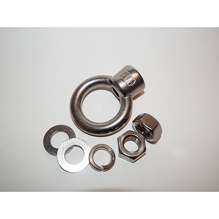 Stainless Steel 316 – 12mm Facia bracket kit with 1 eyenut, 2 flat washers, 1 spring lock washer and 2 hex nuts